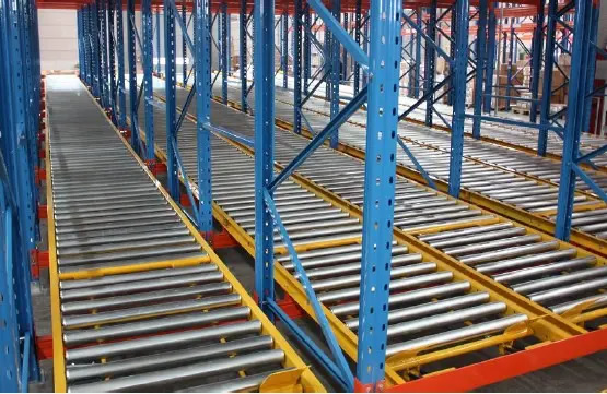 首先,我們要知道重力式貨架的(de)結構(gòu)是什麽,重力式貨架和我們平時看到的架(jià)子很不一樣,正常的(de)貨架結構是方形結(jié)構模式,但是重力式貨架由於特殊的工作方式,我們在設(shè)計貨架的時候需要留出(chū)一定的坡度,讓貨物可以通過滾輪自動移動(dòng)。 重力式貨架除(chú)了橫梁和立柱之外(wài),滾輪是(shì)較為常(cháng)用的一種,它負責承載和運輸貨(huò)物。滾輪可以滾動,所(suǒ)以當貨物放(fàng)在上麵時,貨物會由(yóu)於重力自動從高處(chù)向(xiàng)低處移(yí)動,這樣倉庫的員工就不需要跑(pǎo)來跑去的(de)運(yùn)送產品了,讓倉庫的工作更加輕鬆(sōng)。