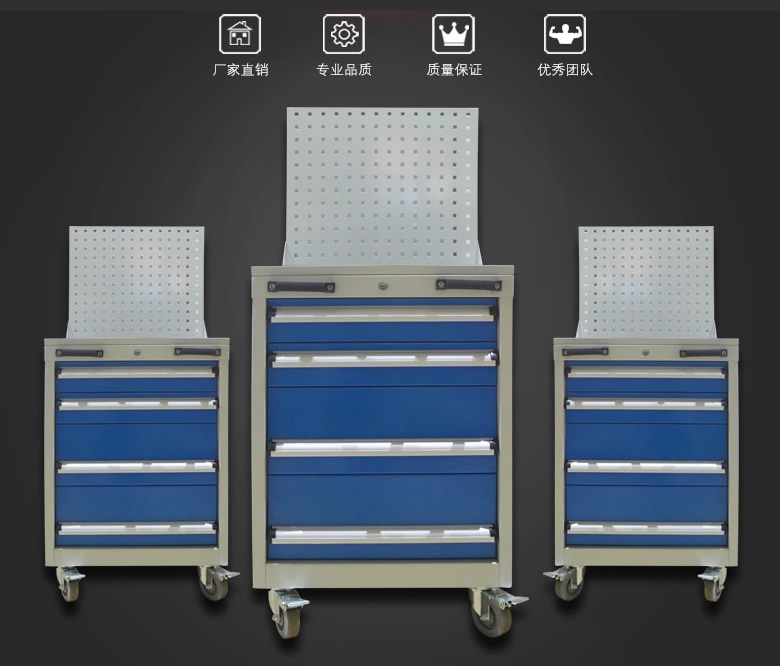 工具車適用(yòng)於工具、刀具、零部件(jiàn)在生產現場中的定置管理,使您的物品存取工作真正(zhèng)做到準時、準(zhǔn)確、高效、低耗(hào)。
