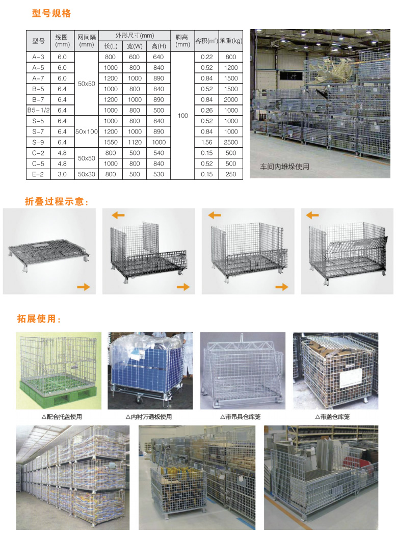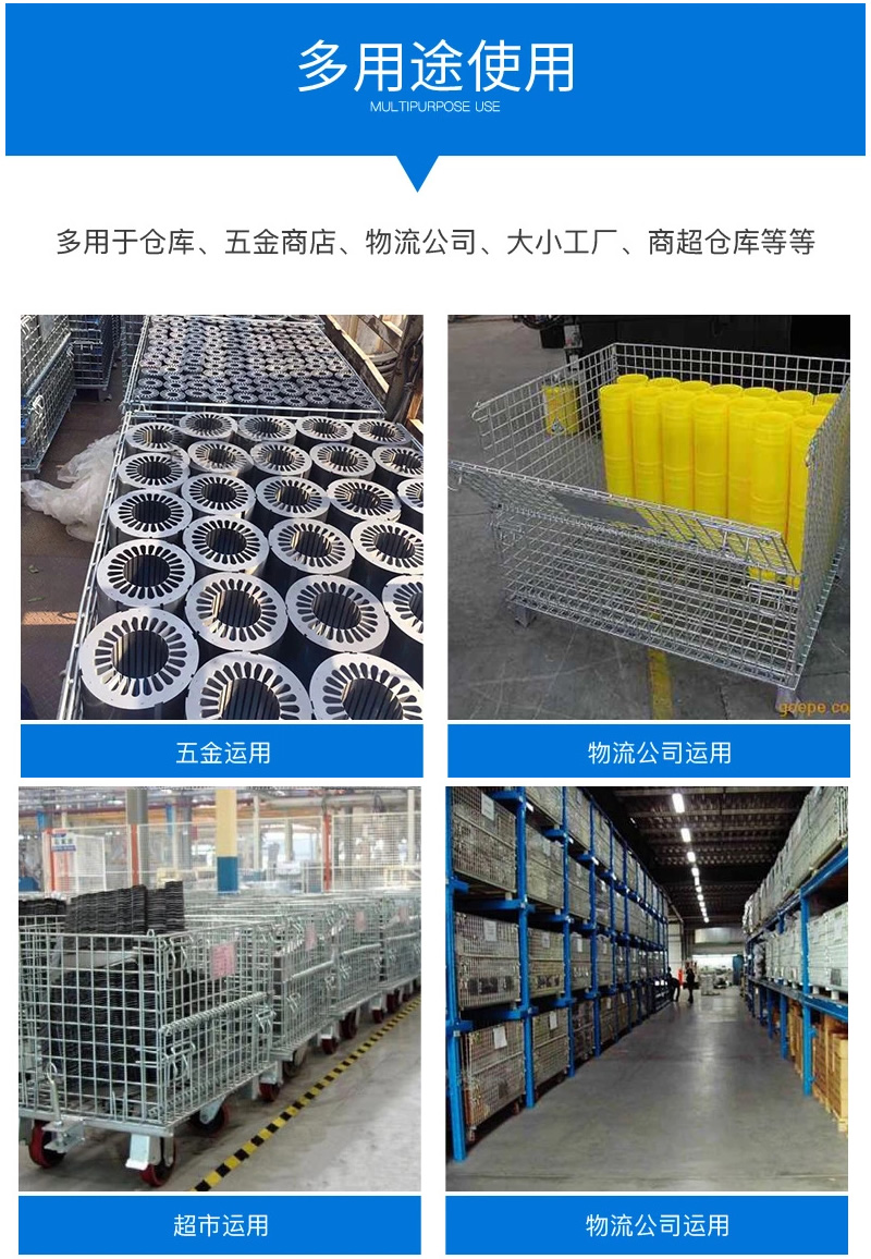 倉儲籠(lóng),具有存放物品容(róng)量(liàng)固定、堆放整潔、存放一(yī)目了然、便於(yú)庫存(cún)清點等優(yōu)點,同時也提高了倉儲空間的有效利用(yòng)率。此外(wài),該產品(pǐn)堅固耐用、運(yùn)輸便捷、能重複使用,能有效降低倉儲企(qǐ)業(yè)的人力(lì)消(xiāo)耗及包裝成本。此(cǐ)產品不僅可以用於工廠生產車間,而(ér)且可以用(yòng)於超市作為展示(shì)促銷和倉儲,且可以在戶外使用。經過改進的倉儲(chǔ)籠可放於貨架、流水線,也可堆垛:帶輪子(zǐ)的倉儲籠可在(zài)車(chē)間方便快捷周轉,帶有PVC板或鐵板(bǎn)的倉儲(chǔ)籠可防止小件漏掉。倉儲籠常用的有三種:一種是帶輪倉儲籠用來周轉用(yòng)的,二種是帶腳(jiǎo)倉儲(chǔ)籠(lóng)可(kě)以堆起可以上架,三種是帶輪帶腳的倉儲籠可以兩用。倉儲籠常(cháng)用標準規格是:1000*800*850的,其(qí)它規格可以定做,這兩個規格都有帶輪和不帶的。