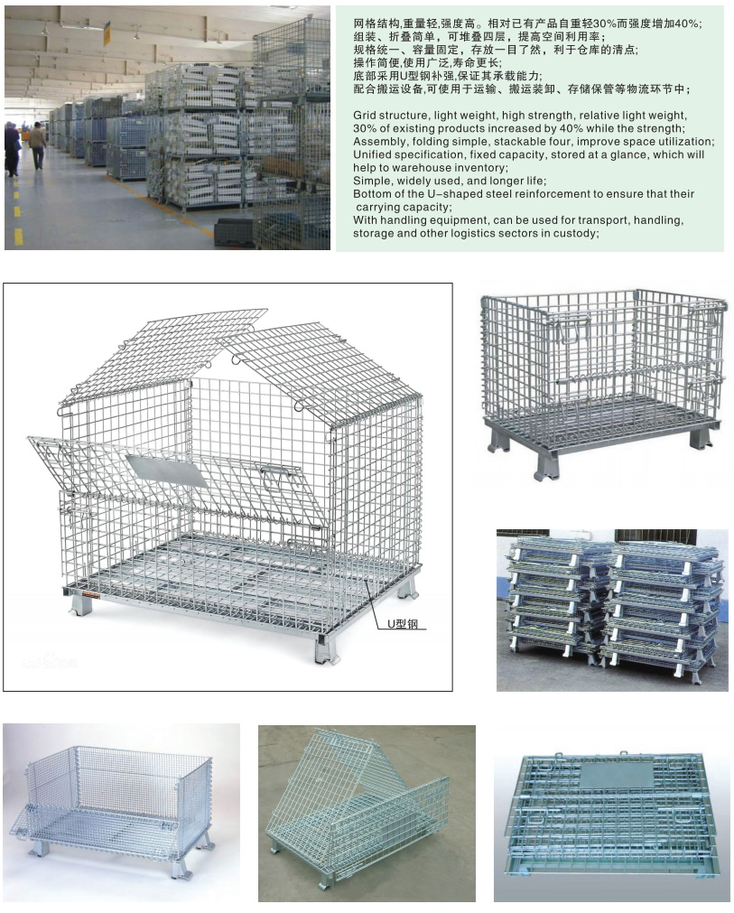 倉儲籠又叫倉庫籠、蝴蝶籠,是倉儲運輸(shū)中很重要的一類物流容器,具有存(cún)放物品容量固定、堆放(fàng)整(zhěng)潔、存放一目了然、便於庫存清點等優點,同時也提高了倉儲空間的有(yǒu)效利用(yòng)率。倉儲籠可以自由折疊,不用時還可以折疊存放,節省(shěng)倉庫空間。