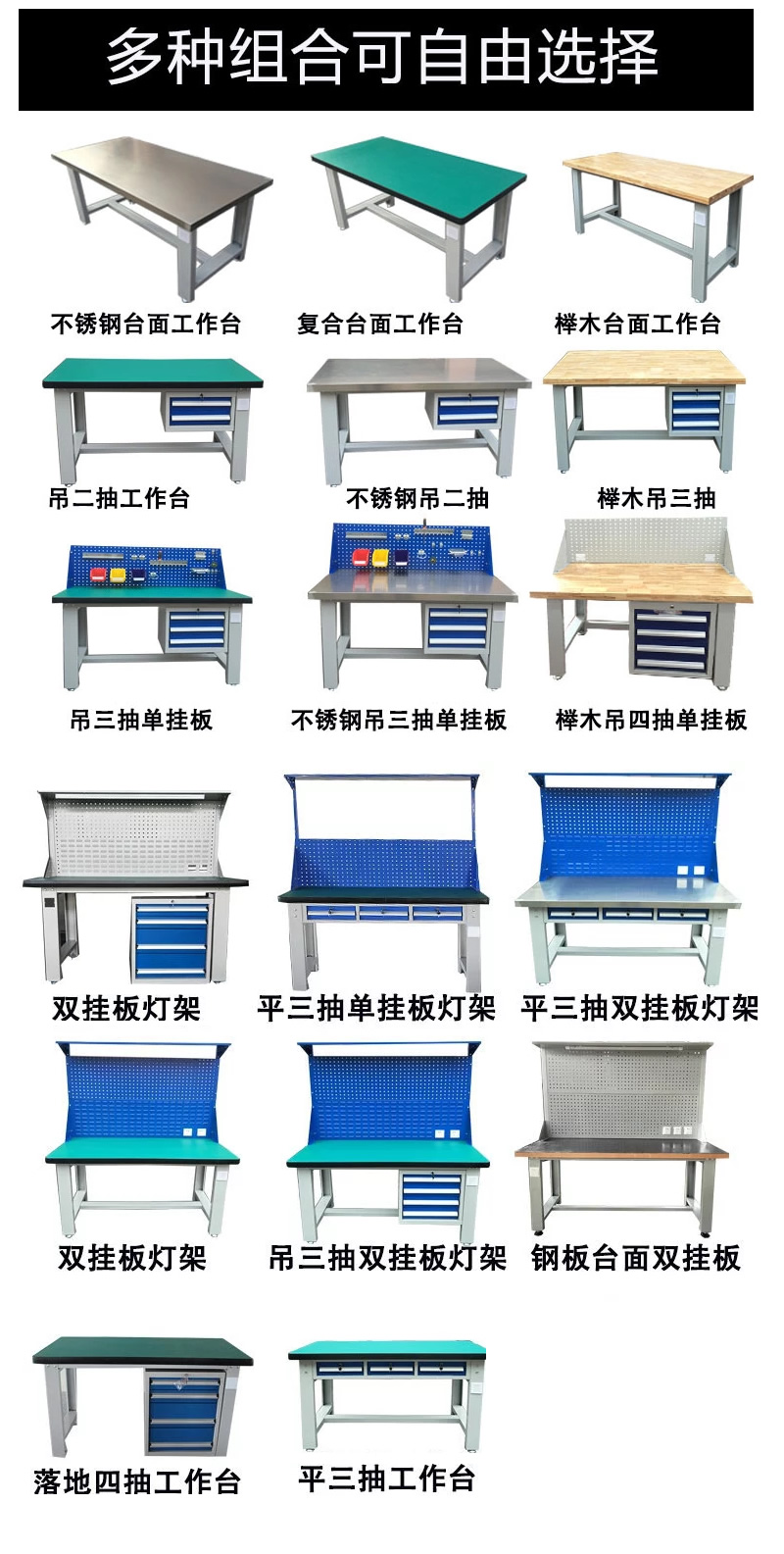 2、多種工作桌桌麵選擇,可配合不同的使用要求。