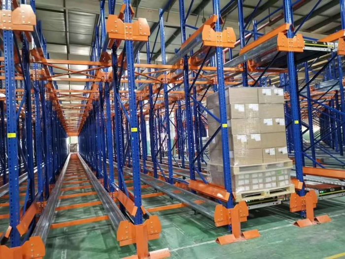 穿梭式貨架係(xì)統是由貨架、台車以及叉車組(zǔ)成的高密度儲存(cún)係統(tǒng),這種高效率的儲存方式是為了提高倉庫空間的利用率,為客(kè)戶帶來的全新(xīn)存儲(chǔ)選擇! 存貨:由叉車將貨物放在貨架巷道導軌的最前端,